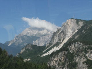 Informatorul nostru (Cipri) ne-a anunțat că singurul autobus direct care ajunge în Cortina d`Ampezzo pleacă din Mestre la puțin timp după ce trecem noi pe acolo, așa că nu ne-am mai dus până în Veneția și bine am făcut: la ora 8:05 părăseam orașul la bordul autocarului. Până la Treviso am mai picotit, apoi nu a mai fost chip: cu nasul lipit de geam urmăream ba localități cu străzi strâmte și aer medieval, ba munți din ce în ce mai înalți, ba tunele, ba viaducte, ba lacuri de acumulare, ba jardiniere cu mușcate și panseluțe. Era duminică și lumea fugea la munte astfel că pe lungi porțiuni se circula bară la bară, cu toate acestea însă, la 11:30 coboram în Cortina d`Ampezzo în autostațione. În sfârșit, eram în Dolomiți și asta se vedea oriunde-ți aruncai privirea!!!