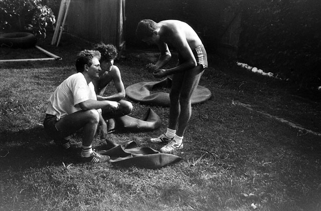 Pluta cu care vrem să coborām pe Mureş urmează să se īnchege din camere de tractor prinse pe un schelet de scānduri