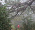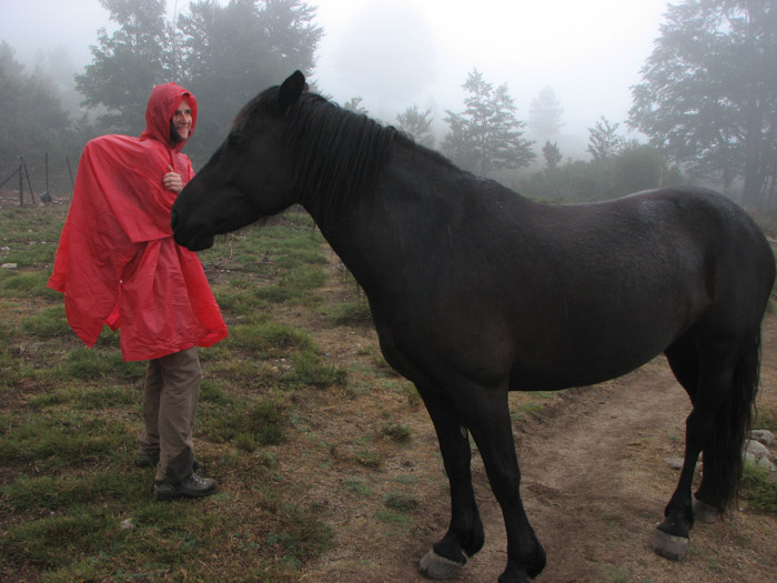 Pe nesimțite vremea s-a schimbat. Soarele s-a ascuns dincolo de nori și pădurea a devenit tăcută și întunecoasă. Câțiva stropi răzleți anunță iminența aversei. Habar nu avem pe unde suntem și cât mai avem de mers până la Prati, următorul refugiu. Ne oprim scurt ca să ne îmbrăcăm căci s-a făcut frig. Plafonul de nori s-a lăsat peste noi ca o ceață împrumutând o notă de mister peisajului cu pini uriași. Câteodată picăturile se îndesesc obligându-ne să poposim sub coroanele unor arbori, după care ne reluăm marșul alert.