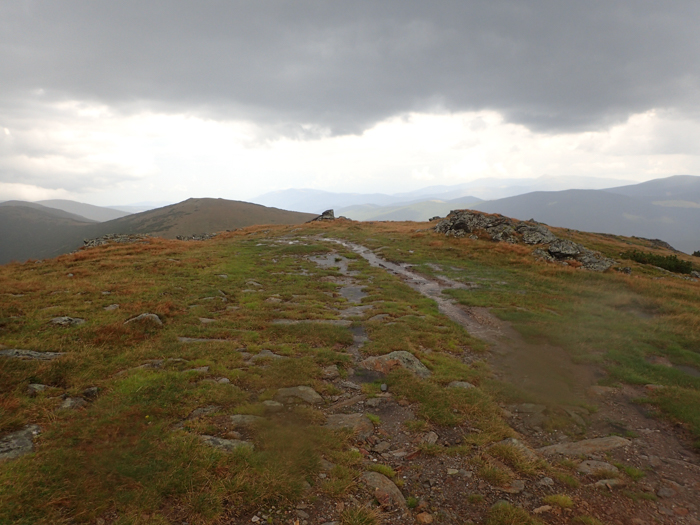 Dacă până aici muntele avea aspectul domol al unor culmi acoperite de pășune, apariția tufelor de rododendron și un pic de grohotiș au schimbat în bine peisajul. Confirmând prognoza meteo nori negri au apărut de jur împrejur astfel că la ora la care am ajuns în creastă ploaia era deja iminentă.