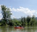 Dimineața râul „fumegă”. Noaptea a plouat destul de tare, dar vremea rea pare să fi trecut și soarele ne încălzește iar. Ne luăm micul dejun printre caiace și la ora 8, înghesuindu-ne pe rampa strâmtă, ieșim pe râu.
