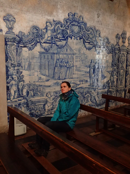 O intensificare a rafalelor ne obligă să căutăm adăpost în biserica São Roque. Amatorii de topuri se pot mulțumi cu faptul că e prima biserică iezuită din Portugalia, dar pe noi ne atrage mai mult aspectul opulent al capelelor laterale între care se remarcă cea a Sf. Ioan Botezătorul sclipind de la aur, dar și colorată din cauza pietrelor scumpe ca lapislazuli, agate și alabastru. Ne tragem sufletul câteva minute în atmosfera tăcută a templului, apoi ne deschidem iarăși umbrelele și coborâm în Praça Dom Pedro IV, remarcând în trecere gara Rossio.